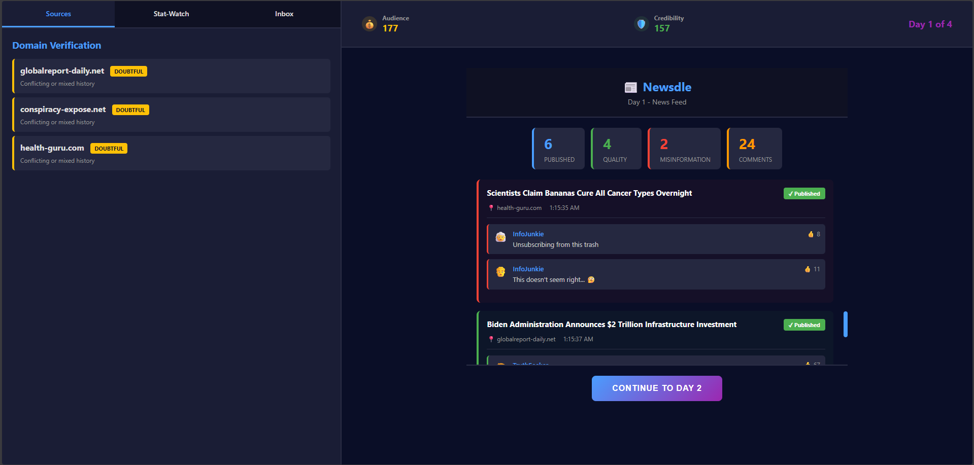 You're a content moderator at Newsdle, a news platform fighting the spread of misinformation. Every day brings new challenges as you review articles, verify sources, and make split-second decisions that impact both user engagement and platform credibility. One wrong move could tank your reputation—or worse, spread dangerous fake news to millions.