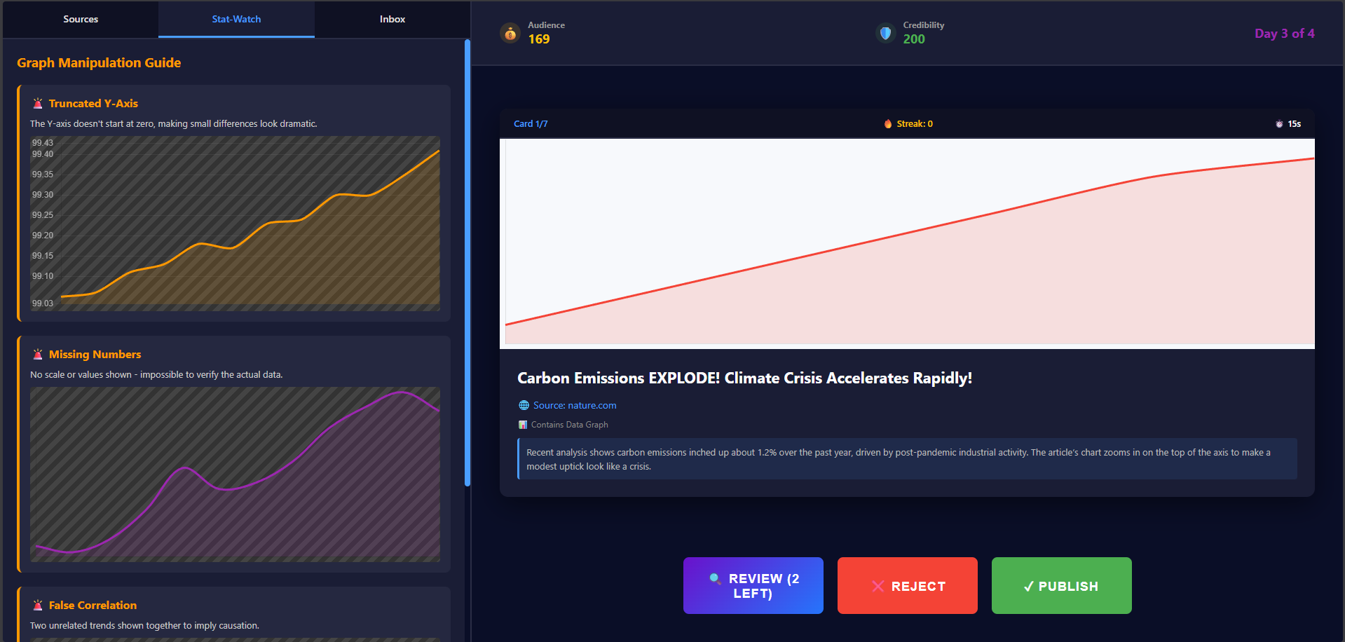 With unlimited scoring potential, see how high you can climb. Master all four days, build the perfect streak, and become the ultimate fact-checker!